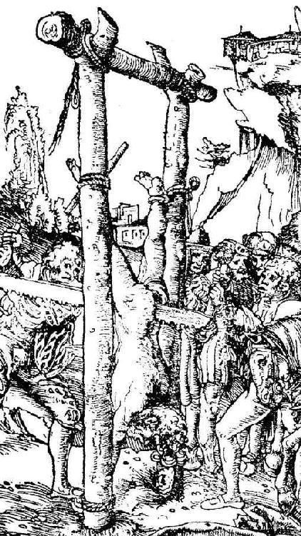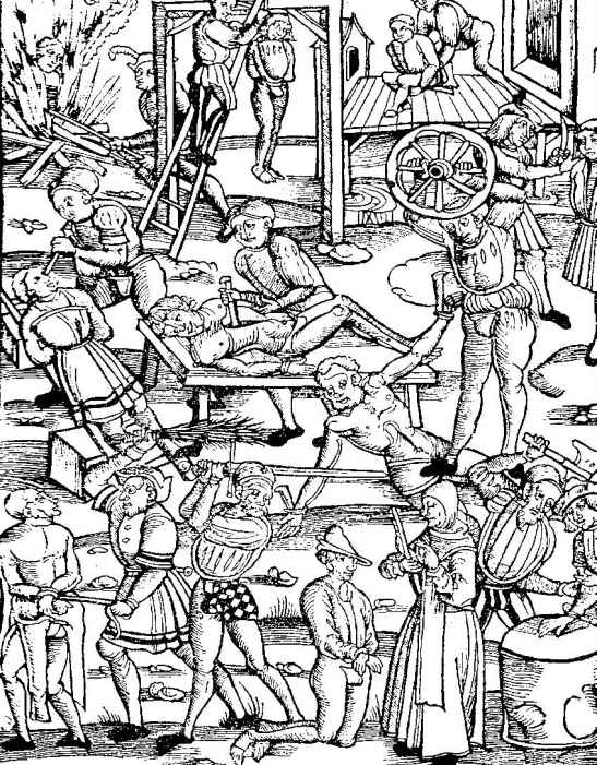 上图——卢卡斯·克拉纳赫(Lukas Cranach)于1548年创作一幅木刻画——和下图片清楚地展现了这一酷刑的实施。