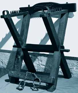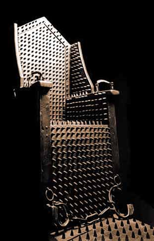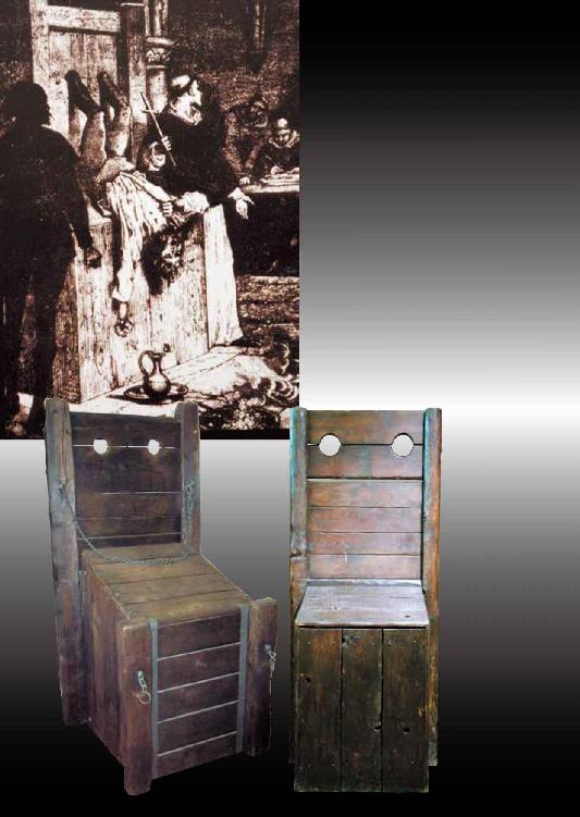 这些审讯椅是审讯员使用的基本刑具。在现代社会中,它的很多改进版依然在使用,而且通过使用电力使其更具效力。