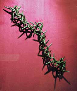这个刑具(左上图),每一面都布满了尖钉,它重达11磅(5千克)多,一旦锁绕在受害者的脖子上,能够持续地磨损脖子、肩部和下巴上的肉,直至伤及骨头。感染、生坏疸、化脓以及最后骨头(特别是暴露在外的脊椎)的腐烂,会致人死亡。带刺的项链(右上图)可以导致相似的后果。在右下图中,可以看到一种“戒律带”(Cilice Belt)。虽然施刑人曾经使用它折磨受害者,但更常见的用法是那些苦修者施加在自己身上。不论戴在上身还是绕在大腿或者手臂,内侧布满尖钉(该图中的有222根)的这些刑具曾经,且如今依然在一些圈子中受到宗教苦修者的青睐。左下图是一件带刺的外套。它不仅可用作一种惩罚,在一些地区,施刑人和刽子手自己也会穿着这样的衣服;这肯定是为了保护自己,以免遭到受害者的反抗攻击。
