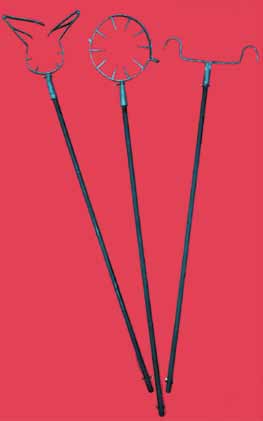 这几个刑具被称作“脖颈捕捉器”(Neck-Catchers),形状各异,目的不一。可用于把囚犯从牢房到酷刑室之间来往押送。也可用于把死囚犯送至刑场,或者押着罪犯游街示众。很显然,罪犯的脖子一旦套上这个刑具,就很难逃脱或者灵便地行动,只能受握杆者的摆布。从本页顶部这幅清晰的图片中,我们不得不佩服这些刑具设计之精巧,它很容易就能卡住罪犯的脖子,令其毫无脱逃的可能。倘若使用这个刑具,不用任何直接的身体接触,也能控制和逼迫受刑人。
