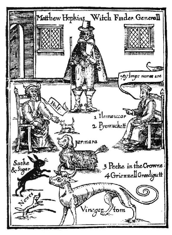 “锥刺”并非霍普金斯断定女巫的唯一法门;他曾强调说,他仅从女性将头发甩过肩膀的姿势或者手指交错的方式,就能断定她是否曾同魔鬼交配过。数月以来,霍普金斯一直是南英格兰的话题人物,议会派的一份报纸《苏格兰之鸽》(The Scottish Dove)甚至歌颂他的丰功伟绩,赞同霍普金斯的推断,即“女巫们承认,她们曾在国王军中效力,并且派出巫婆供国王的军队淫乐……国王的军队似乎已经与魔鬼无异了”。其他一些报纸则令人胆寒地猜测道,世上将会出现魔鬼与女巫交配而来的后代。人们或将其描述为无四肢的独眼巨人,或描述为长有双头、人手的八脚猫。无怪乎当时东英格兰各地争先恐后地援请马修·霍普金斯,而后者也开始自吹自擂——霍普金斯自称“英格兰猎巫将军”(Witch-Finder General of England)。