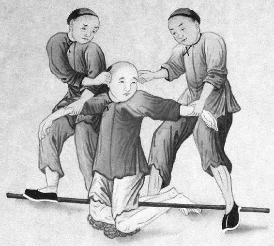 作为一个地广人众、居民操不同语言的大帝国,翻译人员是中国社会不可或缺的一类人。一项特殊的刑罚专门适用于那些在翻译过程中出现谬误的人,通常是强迫受刑者保持跪姿,再用粗竹杠压在他的膝盖后面的小腿上,其重心完全落在膝盖以及竹杠上,接着两个施刑者用力踩竹杠的两端。压杠子能引起剧痛,但不会给受刑者造成永久性的肉体损伤。对于“有伤风化”(淫乱的雅称)的妇女,通常有更奇特的“拶指刑”等着她。用绳索穿系着5根小木棍夹住犯人的手指,施刑者用力拉紧绳索,轻者皮开肉绽,重者指骨可能被夹断。大多数情况下受刑者保持跪姿,除了显示对法庭的屈从外,还是对犯人的一种侮辱性惩罚。