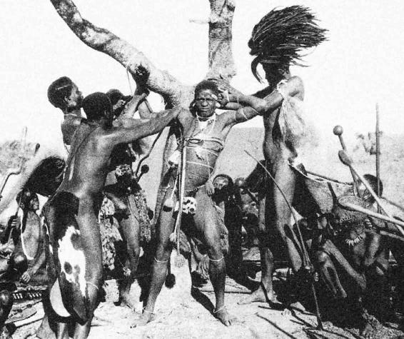 不幸的是非洲始终政局混乱,自文明肇始,非洲便处于当地酋长和小军事地主统治之下。这些人只知道用恐怖和腐败来保持他们的权力,这种政治造就了受苦受难的民众,他们通常选择反叛,但等待他们的是越来越严苛的刑罚。如果说部落组织内部存在严苛的司法,那么不同的族群对待彼此更是残暴至极。在有些非洲部落,尤其是尼日尔和喀麦隆地区,对待战俘的手段就是吃掉他们,这种现象在非洲不是普遍的。有时候,俘虏被屠杀、煮熟,然后被大快朵颐地吃掉。有时候,他们得忍受慢慢的煎熬。捕捉者一次从他们身上割掉一块肉,对他们极尽嘲笑辱骂之能事,受害者亲眼目睹自己的肉被津津有味地吃掉,一块接着一块,直到流血致死。
