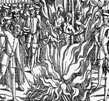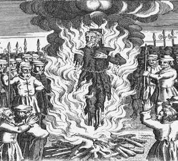 在历史长河中,火刑施用于众多罪行。在宗教迫害和猎巫运动时期,火刑得到了最普遍的认可。人们认为,应该把侵犯了上帝和教会(天主教或新教)的罪人当做异端烧死。他们觉得,只有火刑才能祛除灵魂中的邪恶,烧死附在他们肉体上的恶魔。活活烧死一个人的景象是惨不忍睹的,但教俗人士却认为,肉体罹受苦难要比心灵受到诅咒好得多,提前让犯人们在人间经受不可思议的炼狱折磨,或许有机会使灵魂获得永恒的救赎。因此,很多观看火刑的人并不觉得可怕,反倒觉得这是一种仁慈的行为,让灵魂获得救赎,完全是件好事。其实,有些遭受火刑的人在行刑之前已经被绞死了。他们有悔改之意,可以得到这种宽仁和怜悯,不过,由于他们的灵魂过度腐化,已经无法得到社会的接纳。