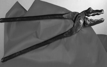 这种刑具用来撕下受刑者的肉,其外形和工作原理都跟老虎钳相似。在中世纪,这种刑具一般不是用来处死犯人的,它在欧洲大陆国家中很常见。