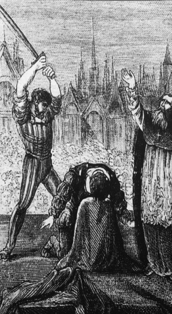 从斧子诞生之后,人们就用它来砍掉敌人的头颅。不过,通过司法判决实施斩首的历史可能要追溯到征服者威廉时期。威廉在1066年占领了英格兰,屠杀了很多盎格鲁—撒克逊人。当他要处决违反法律的诺曼人时——很可能是诺曼贵族——便希望用一种不同的处决方式。于是,他发明了断头台和斩首斧。斩首从1066年出现后,一直到18世纪才被废除。期间,如果英国或欧洲大陆的贵族犯下死罪,等待他们的将是斩首。英国和德国人一般用斧子,而法国人用剑。结果是一样的,不过有记载称,用锋利的剑比用斧子更利落。詹姆斯二世时期的刽子手杰克·凯奇可谓臭名昭著,他常常砍三四斧才能使人头落地。人们想方设法使处决更有效率。1300年前后,德国人发明了断头机。这种刑具的外形无从考证,但它肯定非常有效,因为意大利、爱尔兰和英国人很快都仿制了。14世纪中期,英国人在哈利法克斯、北约克郡都设置了断头机,其中哈利法克斯断头机比较有名。这种断头机与下文所提及的绞刑架不同。据载,在哈利法克斯断头机使用了一个世纪后,苏格兰才开始采用这种刑具。在各种断头机中,最有名的无疑应属盖卢定断头机。