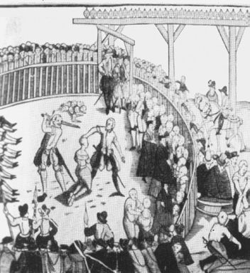 绞死、掏出内脏和分尸是中世纪一种著名的酷刑,由英国国王亨利三世于1241年发明。对它最好的描述是法官向叛逆者宣判的内容。法官在法庭上会宣读: