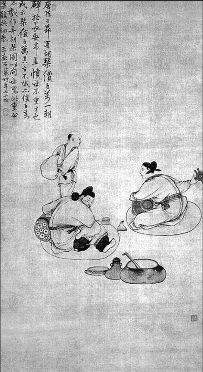 但在这一群诗人里,还不得不推陈子昂为一个异军突起者。子昂和刘希夷、乔知之皆非沈、宋所能牢笼,所能范围者。而子昂尤为杰出。齐、梁风尚的转变,在子昂的诗里,已充分地透露出消息来。子昂[19](659—700)字伯玉,梓州射洪人。开耀二年(682年)进士。初,年十八,未知书,以富家子,任侠尚气,好弋博。后入乡校,感悔。即于州东南金华山观读书,痛自修饰,精穷坟典。武后时,拜麟台正字,累迁拾遗。圣历初,解官归。为县令段简所诬诈,捕下狱,死。年四十一。相传子昂初入京不为人知。有卖胡琴者,价百万。豪贵传视,无辨者。子昂突出,顾左右以千缗市之。众惊问。答道:“余善此乐。”皆道:“可得闻乎?”子昂道:“明日可集宣阳里。”如期偕往,则酒肴毕具。置胡琴于前。食毕,捧琴语道:“蜀人陈子昂,有文百轴,驰走京毂,碌碌尘土,不为人知。此乐,贱工之役,岂宜留心!”举而碎之,以其文轴遍赠会者。一日之内,声华溢都[20]。子昂初为《感遇诗》,王适见而惊道:“此子必为海内文宗。”