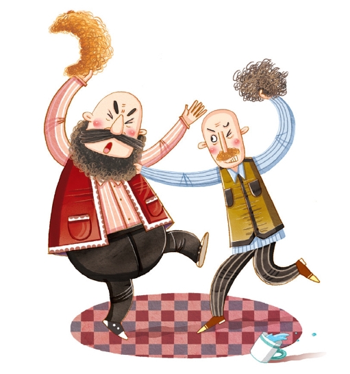 两个小老头儿越吵越激动,很快就从打嘴仗发展到了动起手来,他们像两只猴子似的,互相揪着头发,又抓又咬。