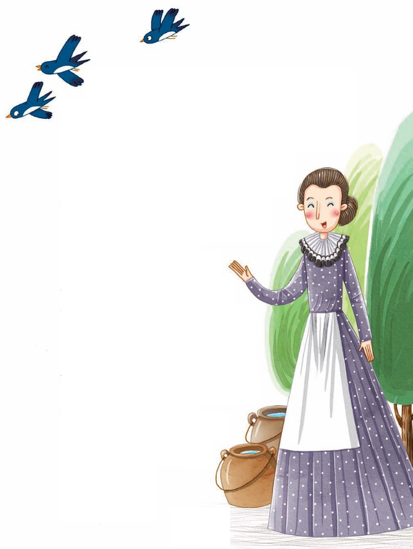 “当然可以,我的孩子!”夫人说着,把两瓦罐水放在地上。