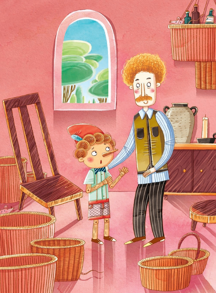 说完,匹诺曹对爸爸说:“爸爸,我们从现在起多编些篮子和筐,多攒些钱,多买些好东西,等过两天医生让见姐姐了,好给姐姐补养身体!”
