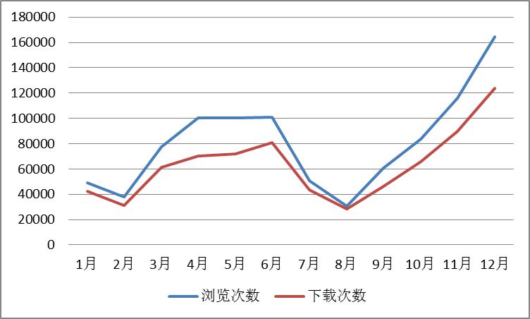 中国知网在我校统计的使用情况如图3-1所示,其所显示的趋势与我校师生的文献资源需求周期同步。这说明,中国知网所提供的中文文献信息服务为我校师生的研究和学习保驾护航,作用显著。