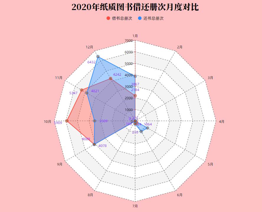 图4-9 2020年纸质图书借还次册月度对比
