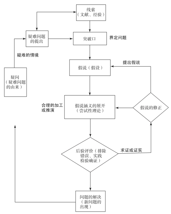 (4)“合理的加工”或推演。当提出各种可供选择的方案以后,必须对每一种假说进行精心“合理的加工”或推演,尽量揭示出它们所蕴含的意义和结论。这是因为这些从假设推演出来的结论或推论,仍然是假说性的,是否能够应验,仍不得而知。所以,需要求证或证实。