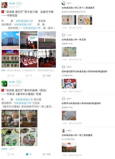 活动期间,长岭县实验小学的学生积极参加话题作品创作与交流,分享与活动书目、活动主题相关的原创作品,包括书签、手抄报、绘画、思维导图、读后感等,通过多样化的分享内容来进一步深化阅读效果。共发表话题作品总数为2390条,共收到5676个赞、1654条评论,作品产出数据排名在全国均高居第一名。