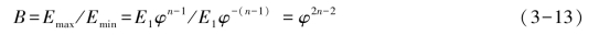 其中,最大牵伸倍数Emax=E1φn-1,最小牵伸倍数Emin=E1φ-(n-1),以B 代表Emax与Emin的比值,可得: