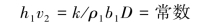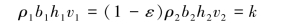 将h2=ρ1b1Dh1/(1-ε)ρ2b2代入h2v2=k/(1-ε)ρ2b2=常数,得: