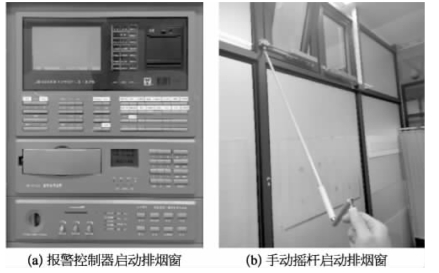 (1)安装自动排烟窗的场所,可远程利用报警控制器启动排烟窗(图3-62a)。
