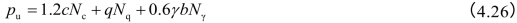 将式(4.20)代入式(4.21)并经整理后得地基极限承载力