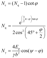 太沙基假定上式中Ep是当γ=q=0时由土的黏聚力c引起的Epc,当γ=c=0时基础两侧超载q引起Epq,当q=c=0时仅由土的重度γ引起Epr,这三部分之和。可表示为