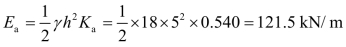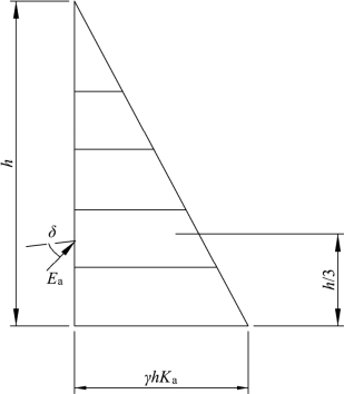 由于主动土压力沿墙背垂直面为三角形分布,故主动土压力的合力为: