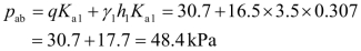 A点:z=0,paA=qKa1=100×0.307=30.7 kPa