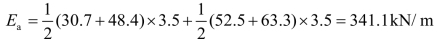 作用于挡土墙上的总土压力,即为土压力分布面积之和,故