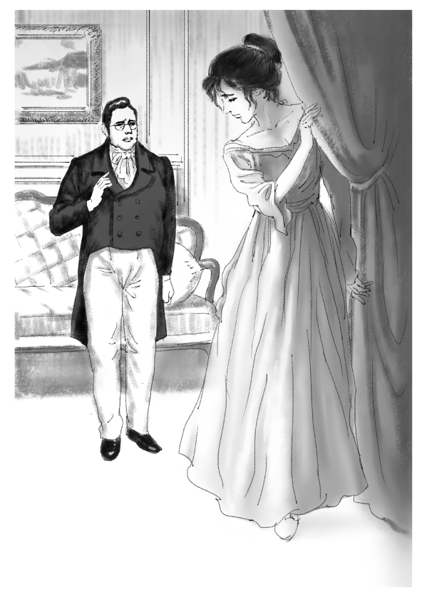 玛丽亚公爵小姐为了自己,为了央她求情的司膳菲利普,向阿玛利亚·叶芙盖涅芙娜和父亲请求饶恕。