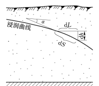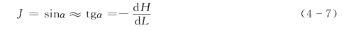 由图4-4可见,对于潜水,浸润曲线上某点的水力坡度即为该点处浸润曲线切线倾角α的正弦。一般情况下,α值很小,故通常用其正切值作为水力坡度,即