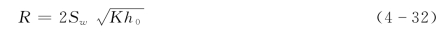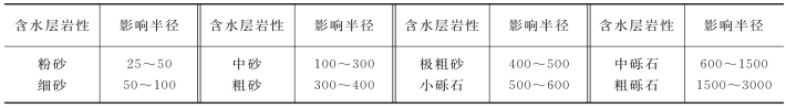 为外井壁处的水位降深,它代表把流量为Q的地下水输送到外井壁处而引起的水头损失。Δh为井损值,代表把流量为Q的水输送到井中以后所引起的水头损失。通常这一部分水头损失包括以下三部分:①水流通过滤水管时,由于滤水管的摩阻引起的水头损失;②水流进入滤水管后,水流方向偏转(由水平方向为主转为垂向)引起的水头损失;③水流进入吸水设备被抽到井口引起的水头损失。
