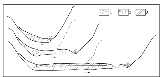 1—坡积物;2—河床相冲积物;3—河漫滩相冲积物