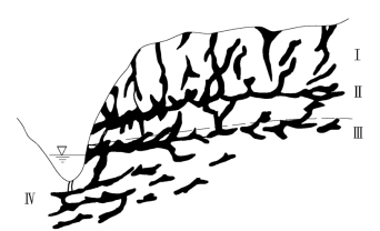Ⅰ—干溶洞;Ⅱ—季节性存水的溶洞;Ⅲ—常年存水的溶洞;Ⅳ—深部溶洞