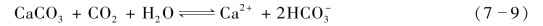 上述反应后,如水中仍含有多量的CO2,则与CaCO3发生以下化学反应,生成重碳酸钙并溶于水,从而破坏混凝土的结构: