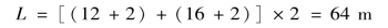 1)总管长度L计算。为使总管接近地下水位,表土层挖去0.5m,则基坑上口平面尺寸为12m×16m,布置环形井点,总管距基坑边缘1m,则总管长L为
