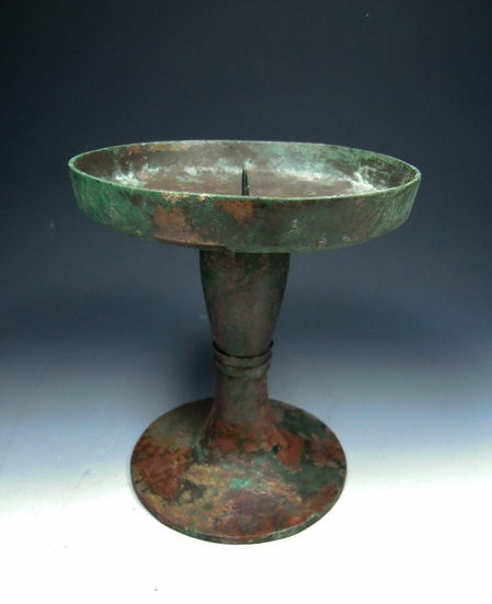 在商周时期的文献中,没有关于灯的文字资料,却有不少“烛”的记载。“烛”,并非蜡烛,实际上是一种火炬。这些火炬,用松、苇、竹、麻等材料做芯,外面用软植物纤维加以缠束,再浸以松脂或油脂做成。火炬燃烧起来既明亮又持久,移动也较方便。从照明意义上来说,比起火堆又进了一步。但严格来说,火炬不能称为灯具,只能说是灯具的原始形态。