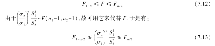 1.9.3.27.3.2 两个总体方差比的区间估计