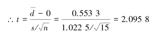 设di =甲i-乙i(i=1,2,…,15)来自正态总体。 问是否可以认为材料甲制成的鞋底比材料乙的耐穿? (α=0.05)