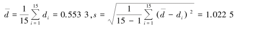 【例8.10】 为了比较用来做鞋底的两种材料的质量,选取15 个运动员,每人穿一双新鞋,其中一只是以材料甲做鞋底,另一只是以材料乙做鞋底。 其厚度均为10 毫米。 过了一季度再测量厚度,得到数据如下: