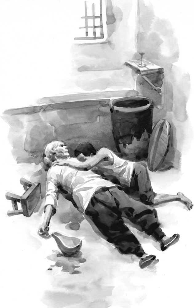 “奶奶,奶奶!”小嘎子摇晃、叫喊,可奶奶还是在倒下去,身体也越来越沉重了,小嘎子随着她的身子往下倒,还一心想听完她的话呢。