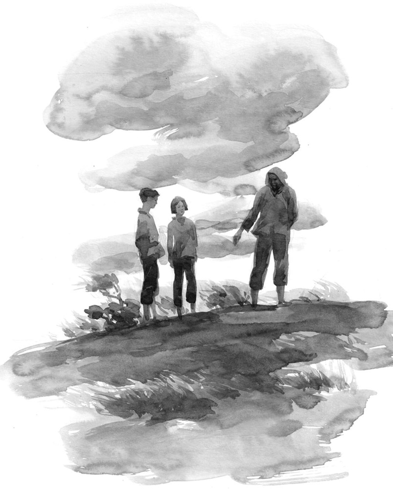 还有根儿嫂,一个看似温柔,却很有主心骨的人。她笼住了霍从雷,也征得服那位“倔”哥哥。她的了不起是不显山不露水的。狗替儿哥性子犟,像座光板石头山,可惜有那么个老婆,太刁钻了!——不,不不!巴大坎突然否定了自己。什么“刁”啊,那是对她的冤枉!瞧她捂着屁股挨板子的时候,带着怨气啃丈夫脸蛋子的时候,有多么的质朴可爱!便是摔苦脸、说丧话、笑人“踢锅、踢筲”的时候,那神气又多么本真啊!当时觉得她“厉害”,都因为还不了解她啊……