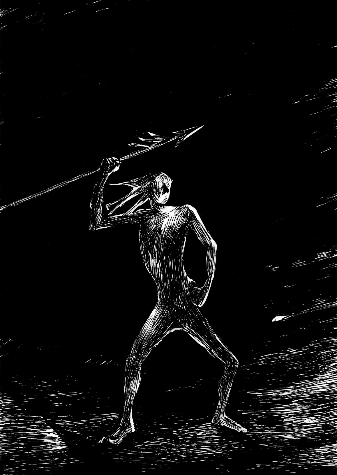 已不是蒙昧如非洲土人而背着雪亮的毛瑟枪的;也并不疲惫如中国绿营兵而却佩着盒子炮〔2〕。他毫无乞灵于牛皮和废铁的甲胄;他只有自己,但拿着蛮人所用的,脱手一掷的投枪。