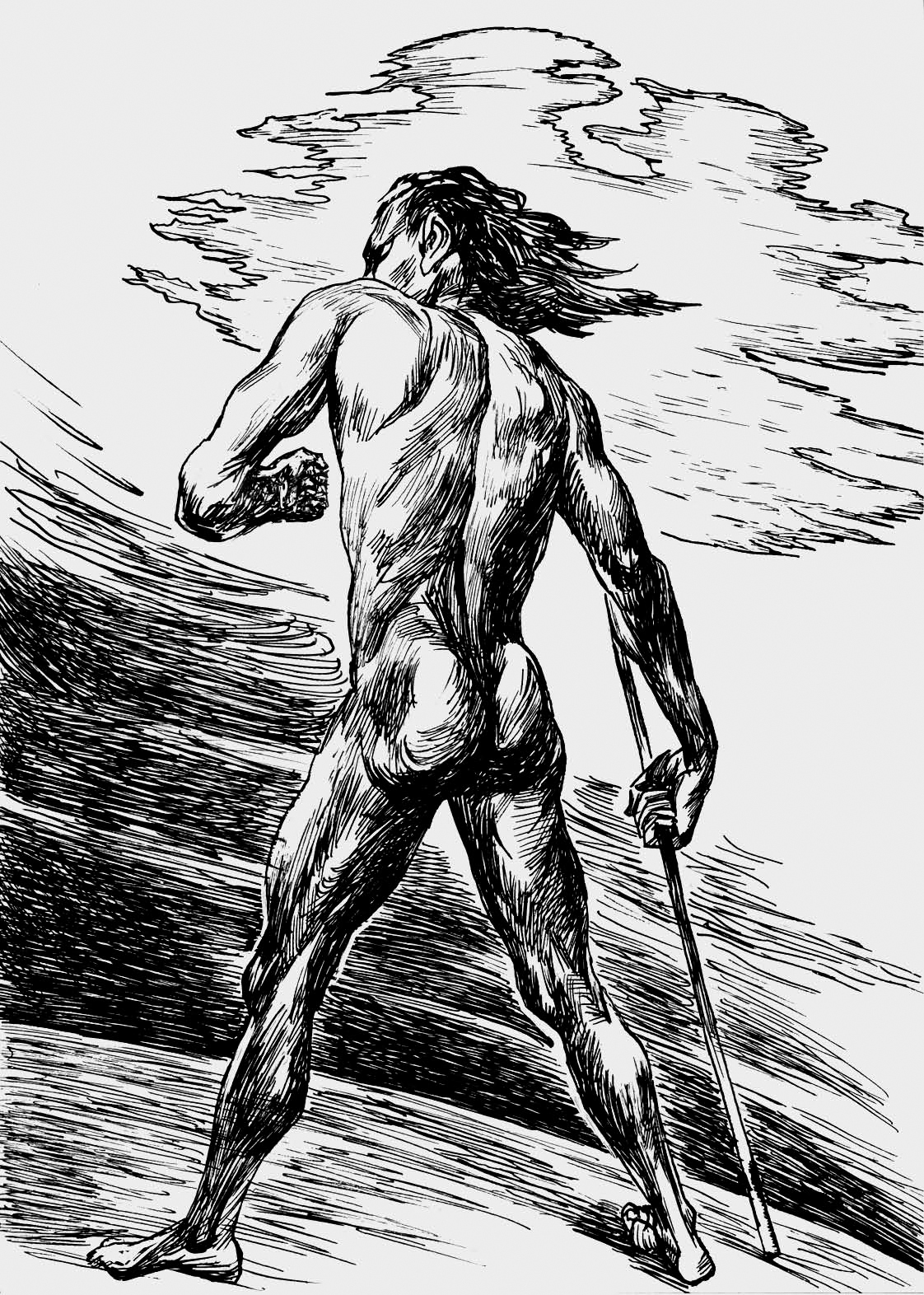 叛逆的猛士出于人间;他屹立着,洞见一切已改和现有的废墟和荒坟,记得一切深广和久远的苦痛,正视一切重叠淤积的凝血,深知一切已死,方生,将生和未生。他看透了造化的把戏;他将要起来使人类苏生,或者使人类灭尽,这些造物主的良民们。