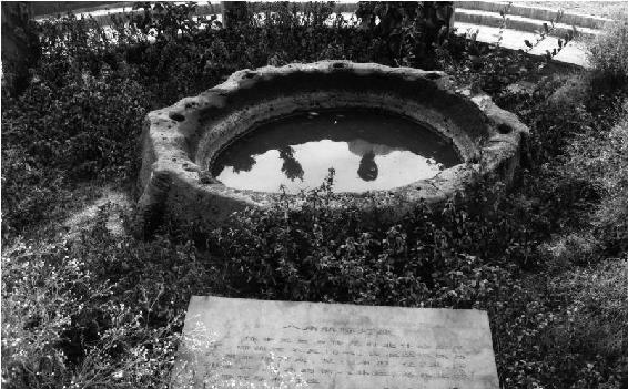 图2.2 徐闻汉港以天然巨石雕琢成的八角形导航灯座,据说是汉代文物,已被石栏保护起来。