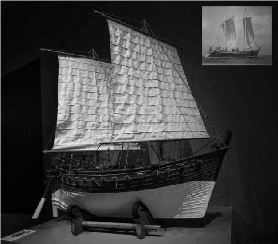 2011年新加坡建了一座海事博物馆,馆中展出了专家们复原“黑石号”的船模及其复原画(图6.6),此船为两桅两方帆尖头尖底的大船。馆外还原复制了5艘亚洲古船:中国福船、印度帆船、印尼婆罗浮屠帆船、南中国海商船及爪哇大船。除了中国福船之外,其他仿真古船皆是永久停泊在港湾中。游客可以登上仿真船,小小感受一下古人“海上丝绸之路”的开洋情怀。话说回来,作为一个有着悠久航海历史的海洋大国,中国这方面的建设就欠缺得太多了。目前,中国以船为主题的博物馆全加起来也不足10座,而美国的舰船博物馆有130余座。