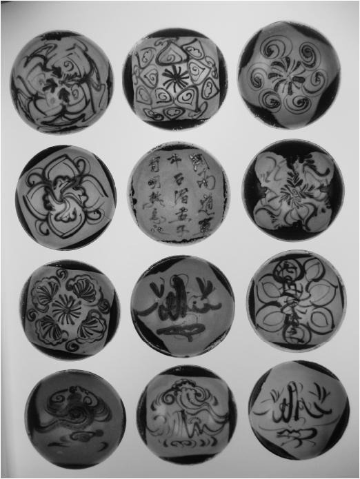 一千多年前,“黑石号”是怎么在马六甲海峡南端沉没的,沉船上没留下任何线索,但它能隐隐地坐沉海底,是因为船上满载着大量货物,这些货物成了它的“身份证”,使后人得以知道,它是一艘打满中国货开往西亚的商船,船上98%的货物是陶瓷,共有67000万件。其中,一批长沙窑瓷碗透露了这艘船的沉没时间。这批瓷碗上不仅写有“湖南道草市石诸孟子有名樊家记”的字样(图6.4),同时还有“唐代宝历二年”(826年)的铭文。考古专家结合对船上八角茴香的碳十四测定,推定沉船年代应为9世纪上半叶。
