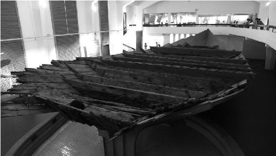 图6.8 泉州开元寺内海上交通博物馆的古船博物馆展示的南宋古船。