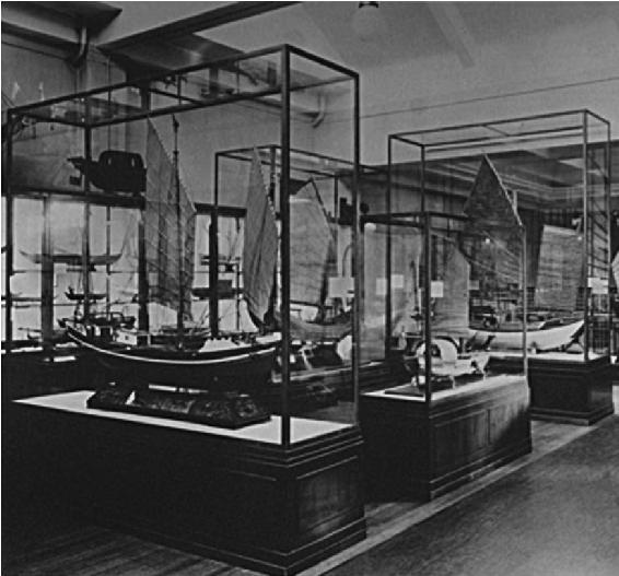 梅乐和在中国海关的履历,有案可查,但梅乐和怎样将这批船模带到伦敦的记载却不多。仅知道他从上个世纪二三十年代开始搜集中国古代船模,还专门请人定制了一批船模。1938年在伦敦南肯辛顿自然博物馆展出的,应当就是这批船模(图6.15)。那么,这批漂泊英国的古船模都是些什么船模呢?
