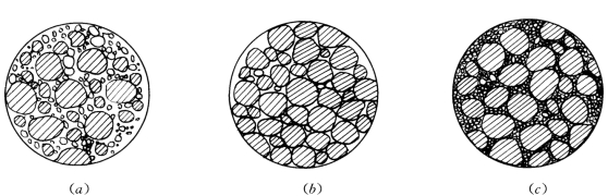 (a)密实—悬浮结构;(b)骨架—空隙结构;(c)密实—骨架结构