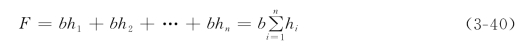 如图3-35所示,将断面按单位横宽划分为若干个梯形与三角形条块,每个小条块的近似面积为Fi=bhi,则横断面面积为