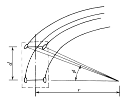 设汽车前后轮轴距为d,前轮转动φ后,汽车的行驶轨迹曲线半径为r,由图4-11可知: